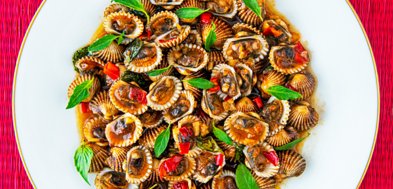 Stir Fried Clams Recipe with Spicy Sweet Tamarind Sauce and Aromatic Basil