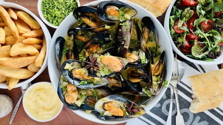 We were introduced to Sea Bounty mussels by Melbourne chef Ben Shewry of Attica many years ago and we went out on a Sea Bounty boat in Melbourne’s Port Phillip Bay, and were lucky to sample the raw mussels just after they pulled out of the sea. They were as sublime as any oyster we’ve eaten. I’ll tell you more about that experience in our next mussels recipe post.